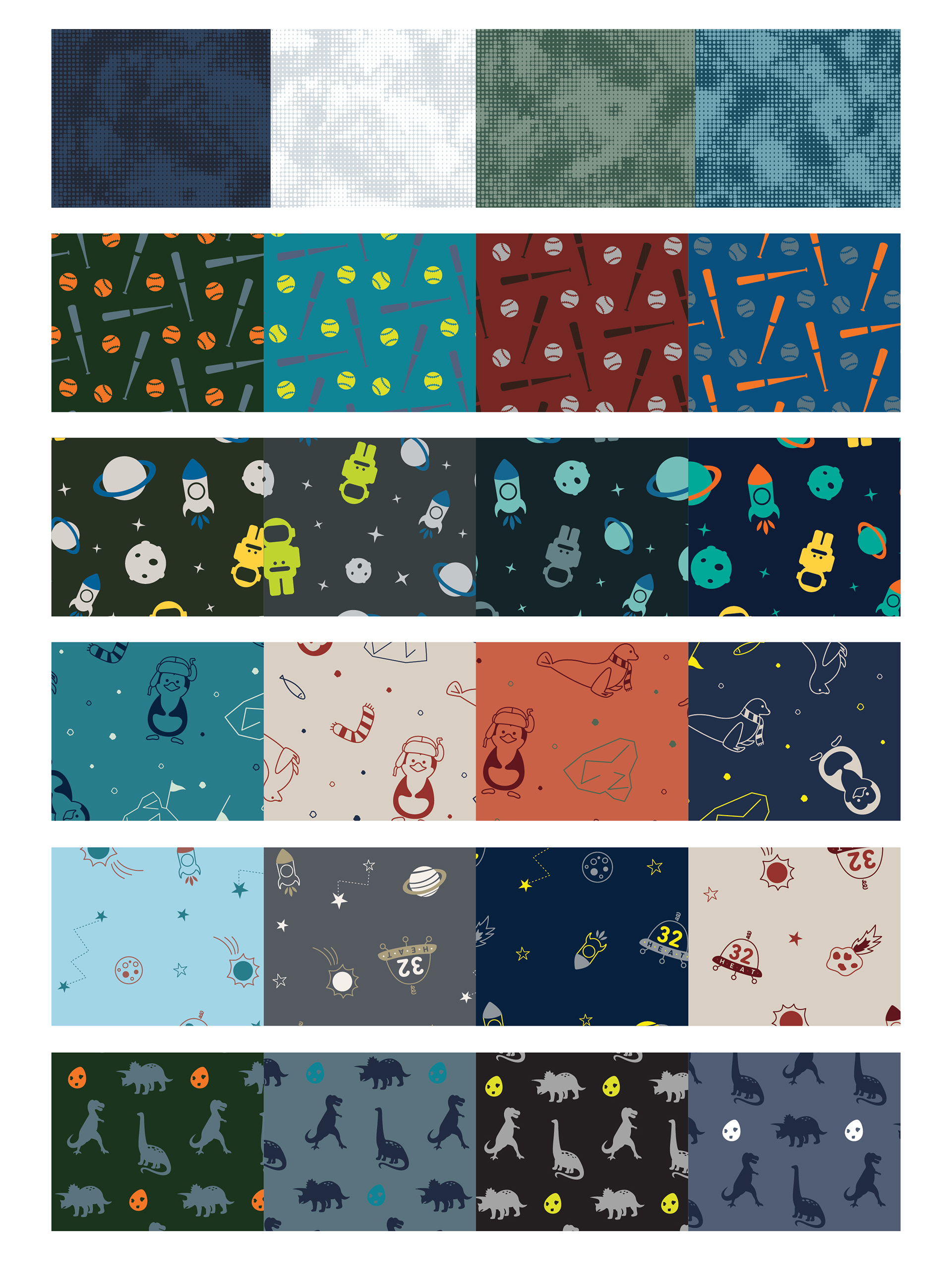 I was in charge of making seamless patterns for men's and boys' underwear and activewear and pets' wear where my design style stands out. The patterns are colored based on color palettes picked for each season from Men's fashion design team.