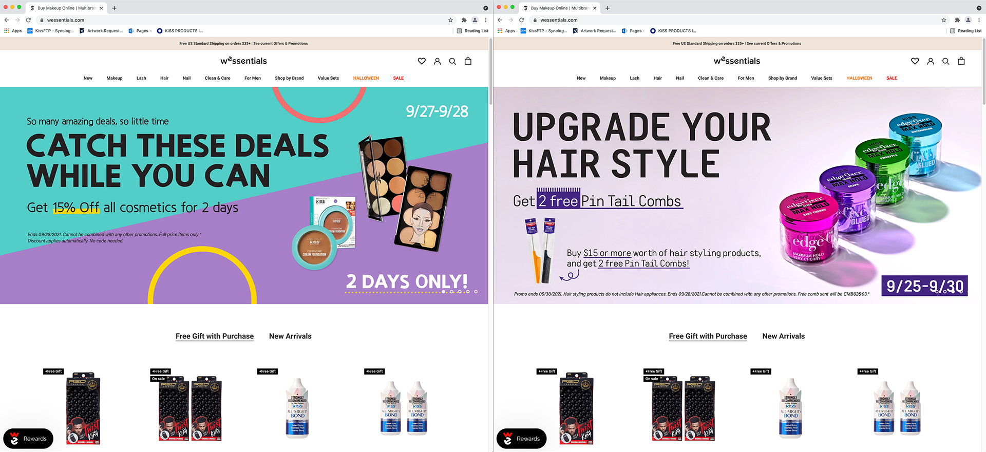 Created web promotional banners/mobile ad for ivykiss.com (B2B - specified online store for salesman and beauty supply store owners) and wessentials.com (B2C - online makeup store for kiss and sub-brand products).
